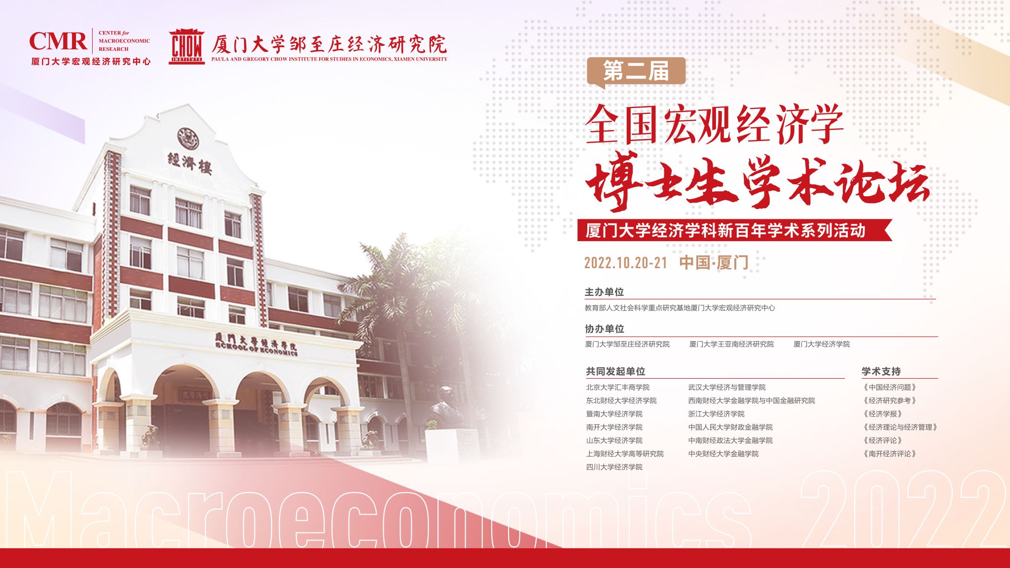第二届“全国宏观经济学博士生学术论坛”将于2022年10月21日在厦门大学召开,采取线上线下相结合的方式举行。