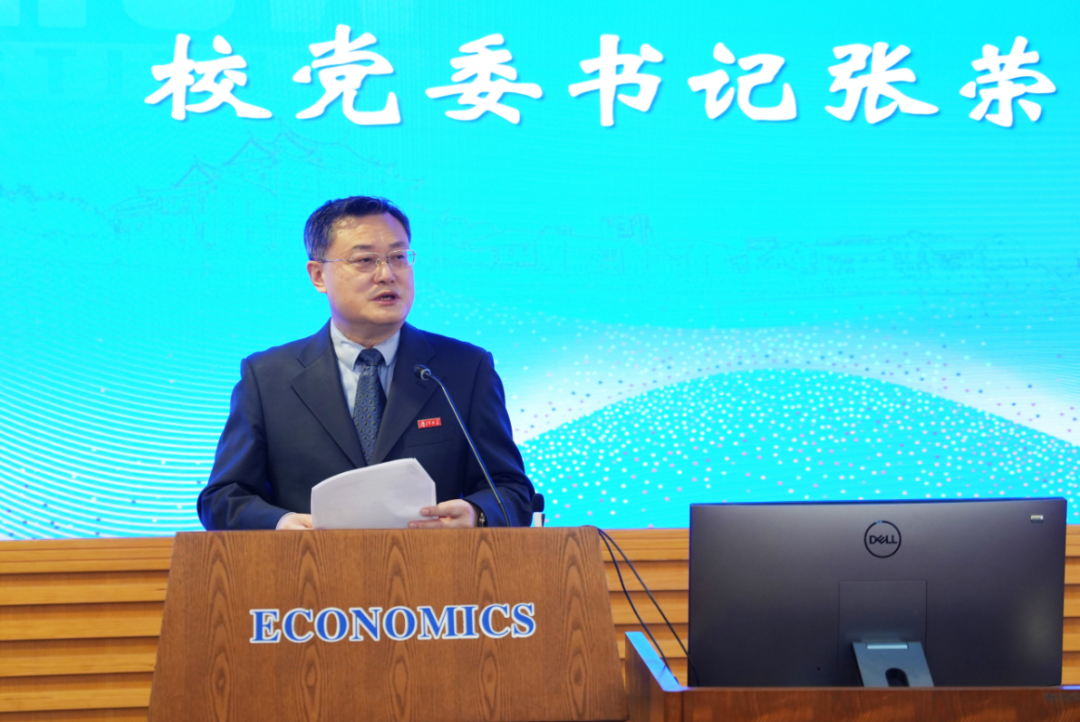 张荣在致辞中向邹至庄经济研究院的成立表示祝贺。他指出,在全校上下深入学习贯彻党的二十大精神之际,邹至庄经济研究院成立仪式暨经济学科建设座谈会是学校贯彻落实党的二十大精神的具体举措,是厦大经济学科乃至经济学界的一件大事。他表示,邹至庄教授是世界著名经济学家,是最早研究中国经济问题的著名海外学者之一,在经济学尤其是计量经济学、动态经济学和中国经济研究领域均有卓越建树,在培育经济学人才、助力厦门大学经济学科提升、助推中国经济学教育高质量发展方面作出了重要贡献,被誉为“中国现代经济学的播种人”。邹至庄经济研究中心自2016年成立以来,始终致力于推进经济学研究范式与研究方法的创新,在人才培养、科学研究、社会服务、国际交流合作等方面取得了丰硕成果,近年来在“双碳”政策、疫情影响评估、粮食预测、金融稳定、公共政策量化评估等方面持续产出具有国际、国内重大影响力的系列原创性理论和应用成果,充分体现了服务国家发展的责任担当。