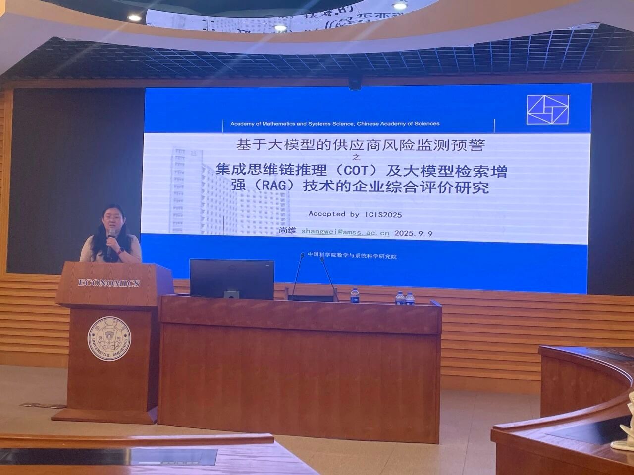 2025年9月9日下午,中国科学院数学与系统科学研究院尚维副研究员莅临厦门大学经济学科,并带来了一场题为“集成思维链和检索增强技术的企业综合评价研究”的学术讲座。本讲座是厦门大学邹至庄经济研究院宏观经济研究中心“宏观与发展经济学前沿讲座”第16期,由宏观中心副主任郑挺国教授主持。该讲座重点探讨了人工智能技术在供应链管理和企业资质评估中的创新应用与发展前景。