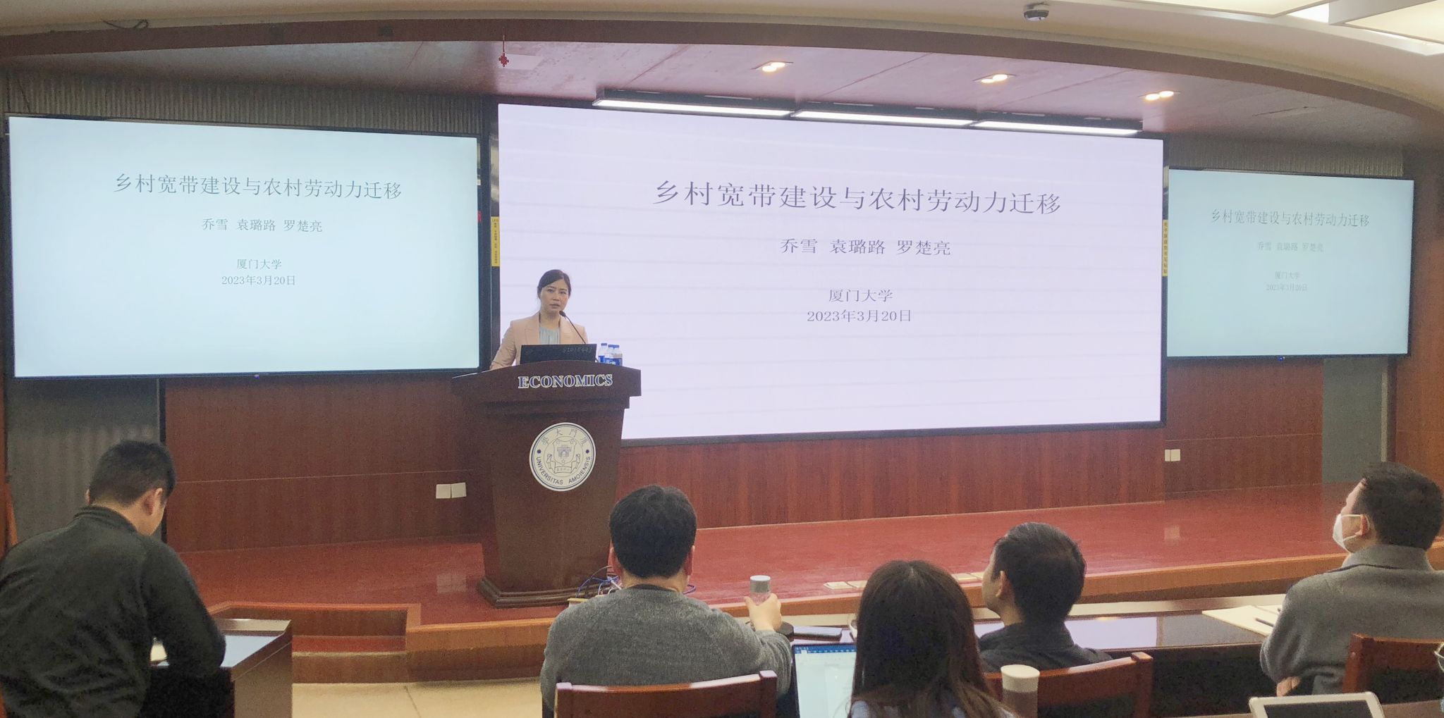 2023年3月20日,“宏观与发展经济学前沿讲座”第4期邀请了中国人民大学经济学院的乔雪教授,开展了一场题为“乡村宽带建设与农村劳动力迁移”的学术报告。